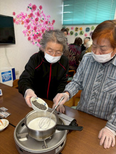 今日は、みんなで【ごまプリン作り】🍮