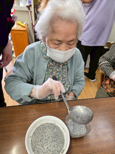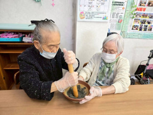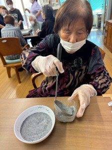 みなさんすり鉢は使い慣れていて、とてもきれいにごまをすってくださいました。